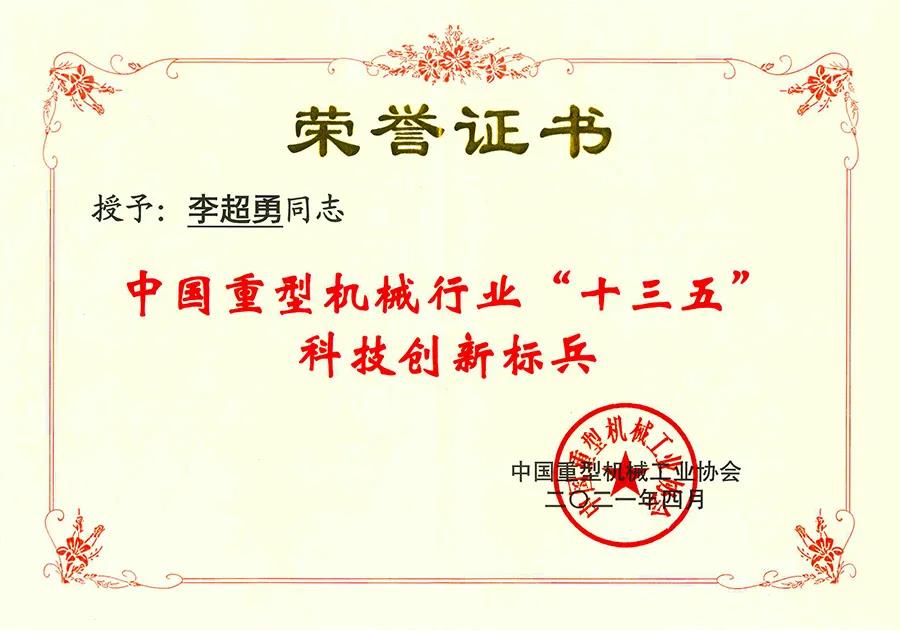 4月16日,中國重型機械工業協會八屆二次會員代表大會暨理事會在北京召開,會議對中國重型機械工業協會“十三五”期間在科技創新方麵取得的成績進行總結表彰,青青青草视频機械榮膺“中國重型機械行業'十三五'科技創新標兵企業”。作為中國重型機械工業協會副理事長單位,青青青草视频機械總經理盛嘉慶應邀出席會議並領獎。青青青草视频機械技術部經理助理李超勇榮獲“中國重型機械行業'十三五'科技創新標兵”。