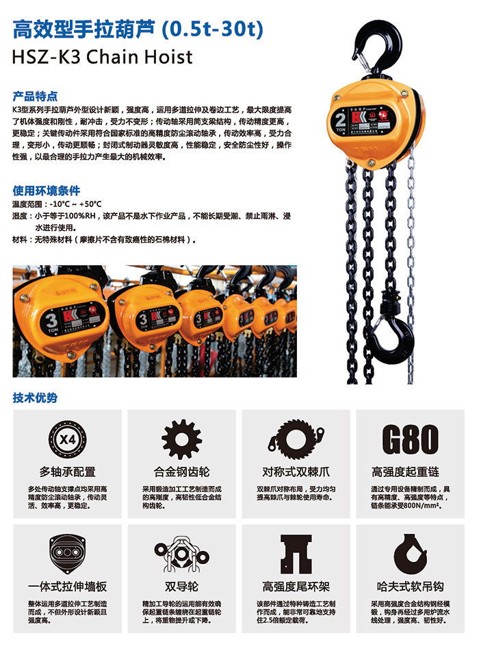 8.起重鏈條是特殊合金鋼製作並經過熱處理,不能私自進行焊接或改裝。