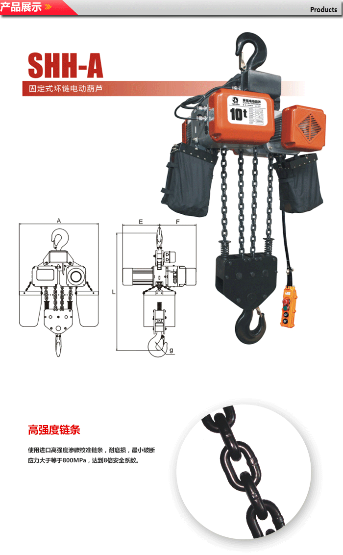 8.起重鏈條是特殊合金鋼製作並經過熱處理,不能私自進行焊接或改裝。